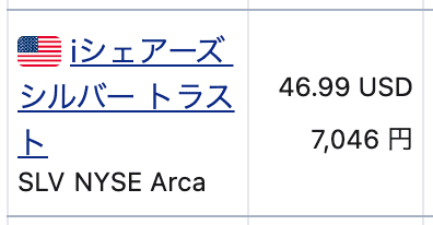 - 【SLV】iシェアーズ・シルバー・トラスト: 銀価格に連動する米国ETFで、ブラックロックが運用している。銀は金よりもボラティリティが高く、短期的な値動きを狙う投資家に人気である。